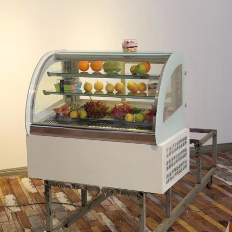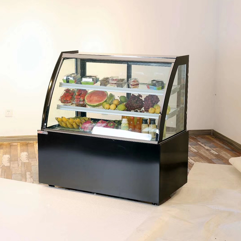 Width: 1200mm Depth: 510mm Height: 760mm Temp Range: 2℃-8℃ Refrigeration method: Air cooling Color: Black and white (customized) Shelves Quantity: Two Shelves Material: Glass Door opening direction: Rear sliding door Refrigerant: R134a Net weight: 75kg Capacity: 135L Function: Refrigerate and display Optional Material For outer decoration: Electrostatic spray plate/marble/stainless steel Price: Quotation according to the product size, quantity and specific requirements required by customers.